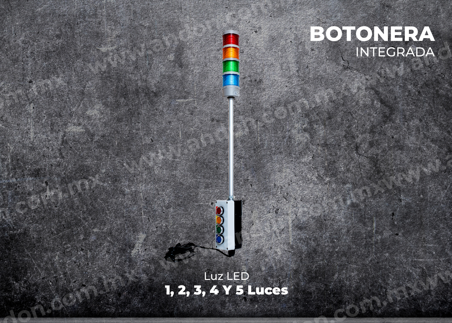 - PRO.AND-5I. Andon Alámbrico de 5 Colores: Rojo, Ámbar, Verde, Blanco y Azul